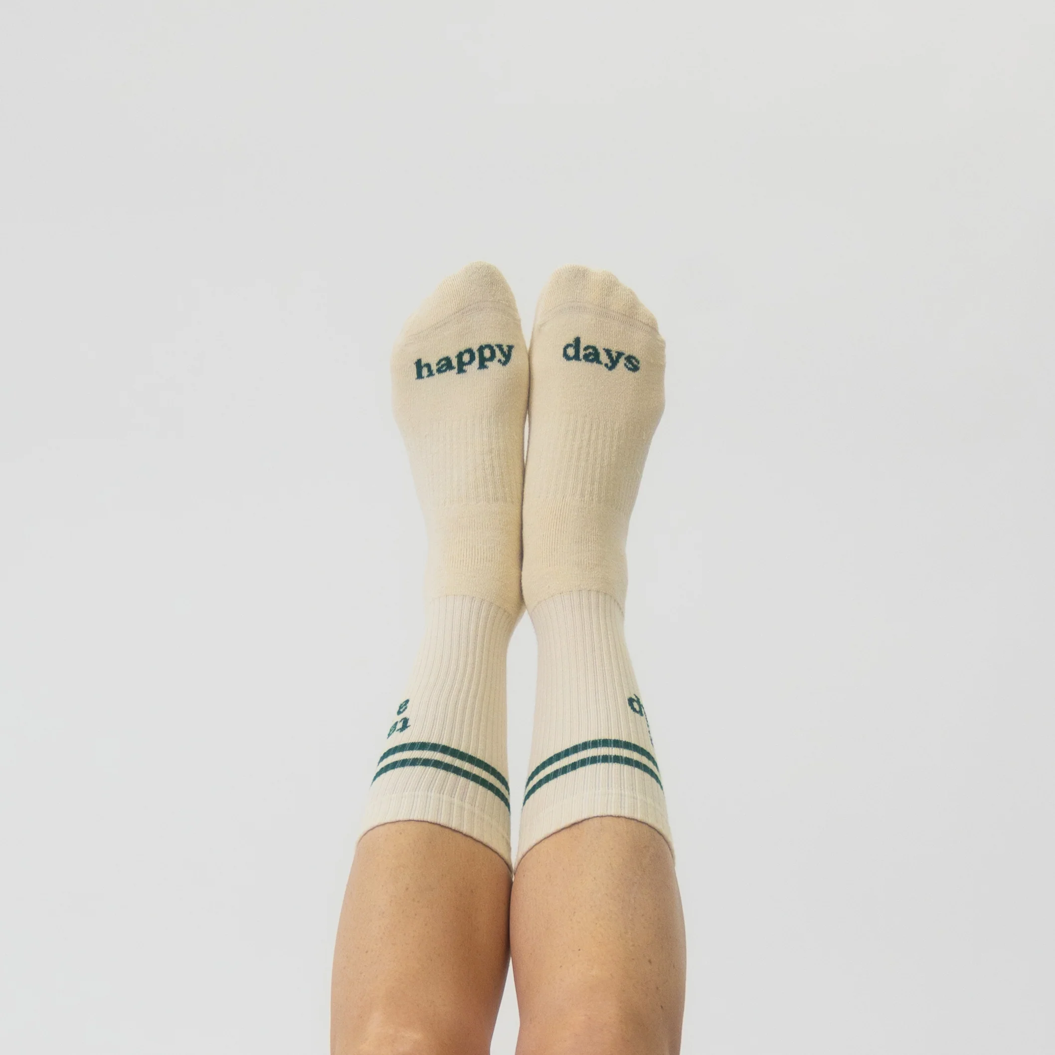 Meet our brand new, limited edition Take a TRIP Socks in off-white and forest green. Made from organic cotton for good feels, keep your toes warm and cosy this season - happy days.Â